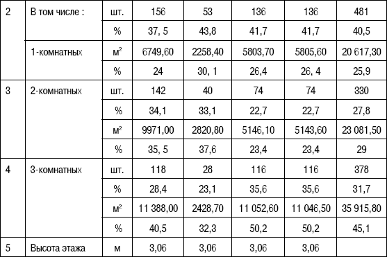 Таблица 6.5. Общая характеристика квартир в квартале «Жемчужная премьера»