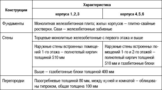 Таблица 6.7. Конструктивные решения жилых домов квартала «Жемчужная премьера»