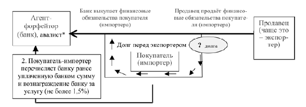 В российской бизнес-среде среди рыночных инструментов (факторинг, использование аккредитивов и векселей, форфейтинг) наименьшее распространение получил форфейтинг[16]. При использовании форфейтинга экспортер (кредитор) получает стабильное финансирование, избавляясь от риска потери ликвидности. Кроме того, у экспортера существенно улучшается структура бухгалтерского баланса, поскольку сокращаются объемы долгосрочной дебиторской задолженности в структуре активов баланса. Данный кредитный инструмент должен быть акцептован импортером (покупателем) и иметь аваль или безусловную гарантию от банка импортера. Форфейтинг в системе кредитно-денежных отношений следует рассматривать в качестве специфической формы кредитования торговых операций. С позиции методологии финансового менеджмента и бухгалтерского учета форфейтинг является своего рода инструментом управления дебиторской задолженностью компаний. В форфейтинговой операции участвуют форфейтор (чаще всего банк) приобретающий на определенных условиях коммерческие долговые обязательства заемщика перед кредитором.