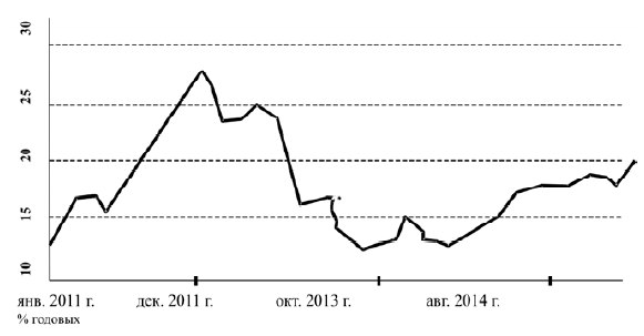 Все ключевые параметры денежно-кредитной политики в РФ указаны в проекте «Основных направлений единой государственной денежнокредитной политики на 2015 и период 2016 и 2017 гг.»[20]. Многие из указанных в этом документе позиций совершенно не отражают сложившейся ситуации на кредитном рынке Росси в 2013–2014 гг.