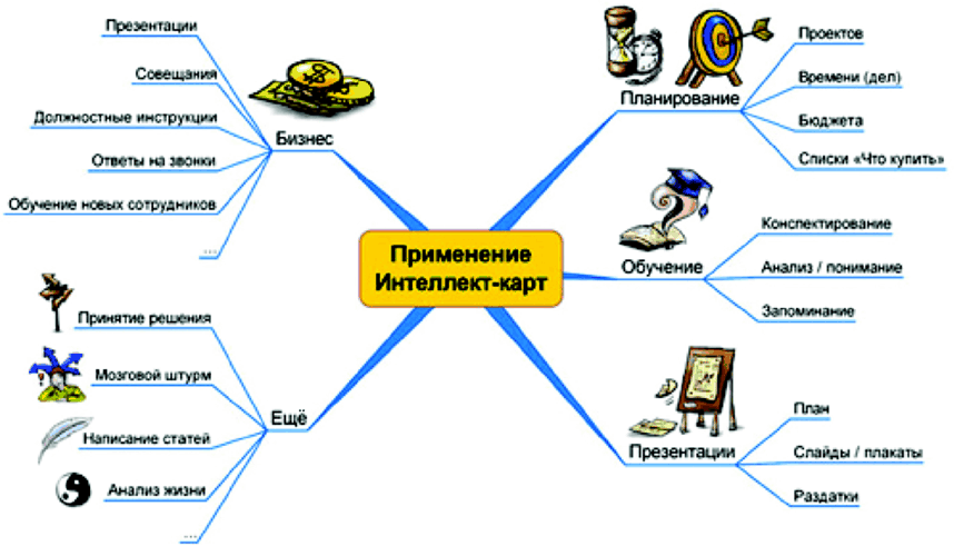 Области применения Интеллект-карт могут быть самыми различными. Например: