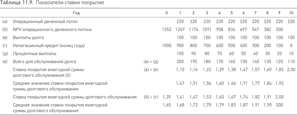 Таблица 11.9 приводит значения ставки покрытия для типичного проекта, у которого: