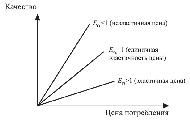 Варианты соотношения качества товара и цены его потребления при разных коэффициентах эластичности приведены на рис. 8.1.