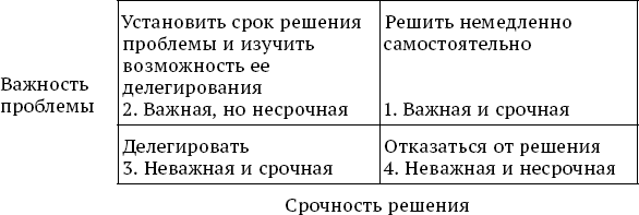 Если проблема достаточно срочная, но не играет стратегической роли, ее, безусловно, стоит делегировать (квадрат 3). Если проблема несрочная и неважная, можно вообще отказаться от решения (квадрат 4).