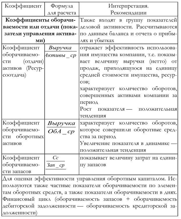 Финансовые коэффициенты оборачиваемости