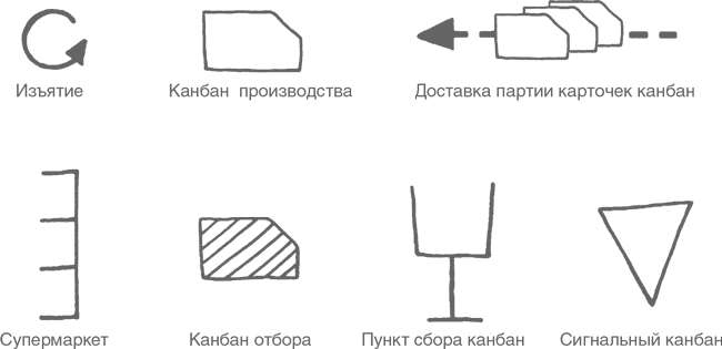 Ниже приведено несколько пиктограмм, связанных с вытягивающими системами супермаркета: