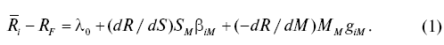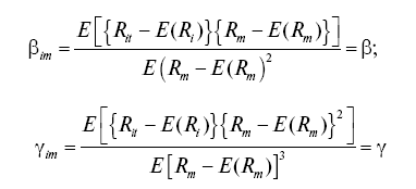 ?0 – свободный член; ?1 – рыночная премия за систематический риск, измеряемый ? = (dR / dS)SM; ?2 – рыночная премия за риск, измеряемый систематической асимметрией – (-dR / dM)MM.