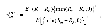 Заметим, что все избыточные доходности рыночного портфеля неположительны (min(Rm – т, 0) ? 0, где т – бенчмарк) в случае одностороннего бета-коэффициента и все принимают неотрицательное значение (min(i?m – т, 0)]2 ? 0) в случае односторонней гаммы. Более того, для одностороннего бета-коэффициента (одностороннего гамма) увеличение числителя (уменьшение) происходит, когда избыточная доходность портфеля отрицательна и уменьшение (увеличение) в случае, когда избыточная доходность портфеля положительна.