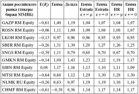 Для спецификации модели X. Эстрады [Estrada, 2002; 2007] по аналогии с односторонним бета-коэффициентом соответствующая мера односторонней систематической скошенности (E-gamma) примет вид: