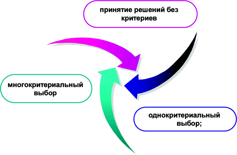 Классический случай однокритериального выбора, при котором исходы прочих процессов полностью независимы от данного, – это крайне редкий случай в практике принятия решений. Чаще всего задача однокритериального выбора представляет собой лишь «внешнюю оболочку», «пользовательский интерфейс» для лица, принимающего решение. С целью снижения стрессового воздействия потока данных используются различные методы приведения информации к однокритериальной форме. Методов приведения к однокритериальной форме существует довольно много: начиная от метода равноценных уступок и заканчивая методом выбора главного критерия. При этом, как правило, формулируется некий набор аксиом, относительно которых принимаются решения о сравнимости и взаимозаменяемости различных частных критериев. Эти аксиомы также устанавливают весовые коэффициенты и правила группирования, при этом, естественно, семантика полученного показателя не всегда может быть однозначно определена.