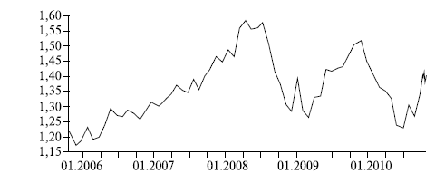 С.Г. Сеччети и Р. Мосснер проводят исследование на предмет того, насколько ускорение роста цен на товарные активы (энергоносители, металлы и продукты питания) повлияли на рост цен в большинстве стран [Cecchetti, Moessner, 2008]. В итоге авторы приходят к выводу, что устойчивой зависимости (по крайней мере, на 10-летнем периоде) не наблюдается. Другими словами, значительное повышение цен на товарные активы в последние 10 лет не приводило к существенному ускорению инфляции в развитых и развивающихся странах (за редким исключением). На показатели инфляции больше влияла «продуктовая» инфляция, но и это влияние было не очень значительным. Тем не менее для большинства инвесторов товарные активы в условиях ожидаемого роста инфляции и низких процентных ставок (второе даже важнее) воспринимаются как актив, который способен принести более высокую доходность, чем традиционные инструменты (прежде всего на долговом рынке). Это и определяет интерес финансовых инвесторов к вложениям в товарные рынки. Как уже отмечалось, этот интерес цикличен и связан с динамикой курса доллара. Изменение тренда на рынке доллар-евро воспринимается как сигнал к покупке или сбросу товарных активов.