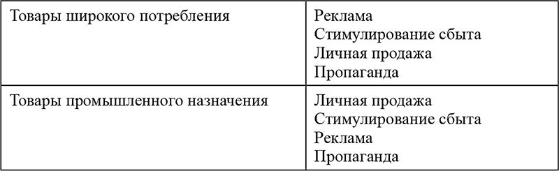Таблица 11.1. Относительная значимость основных средств воздействия на покупателя с целью продать (приобрести) товар