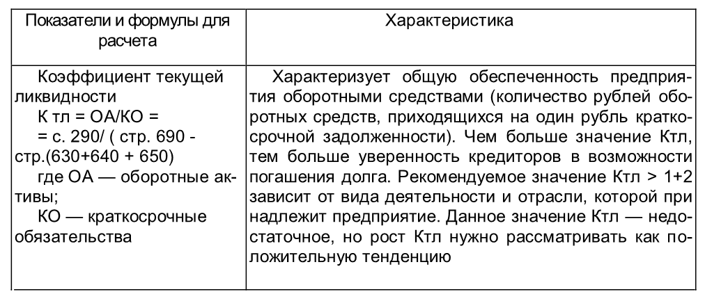 Показатели ликвидности и платежеспособности оценивают финансовое состояние предприятий с позиций краткосрочной перспективы. В общем виде они характеризуют возможность своевременно и в полном объеме произвести расчеты по краткосрочным обязательствам перед кредиторами. Ликвидность актива – это его способность трансформироваться в денежные средства. Степень ликвидности определяется продолжительностью временного периода этой трансформации. Уровень ликвидности предприятия оценивается с помощью коэффициентов ликвидности, основанных на сопоставлении оборотных средств и краткосрочных пассивов. Платежеспособность – это наличие у предприятия денежных средств и их эквивалентов, достаточных для расчетов по кредиторской задолженности, требующей немедленного погашения.