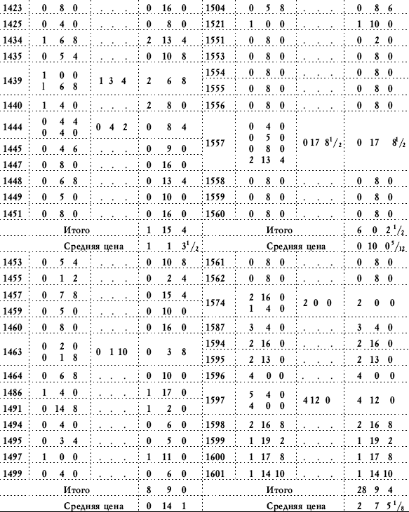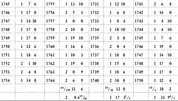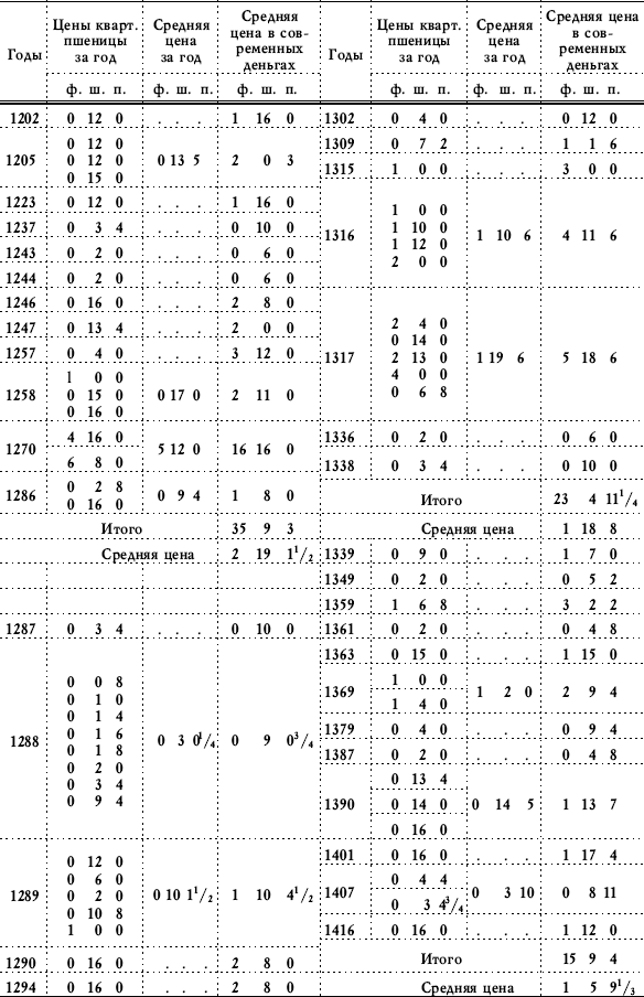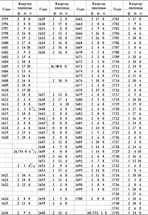 Цены квартера в 9 бушелей лучшей или самого дорогого сорта пшеницы на виндзорском рынке в день Благовещения или на Михайлов день за период с 1595 по 1764 г. Указанные цены представляют собою среднюю из максимальных цен в эти два базарных дня.