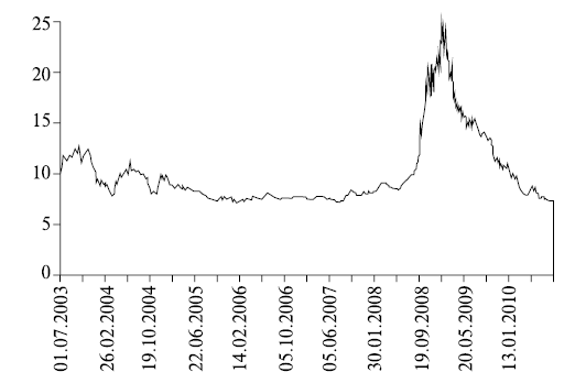 Рис. 1.1. Средневзвешенная эффективная доходность российских корпоративных облигаций