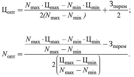 где Цопт, Nопт – оптимальные значения, соответственно цены единицы товара и объема реализации в натуральном измерении.