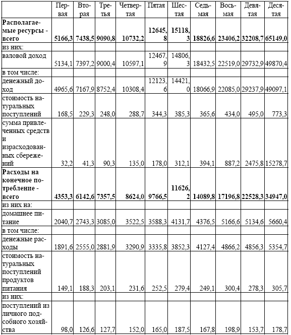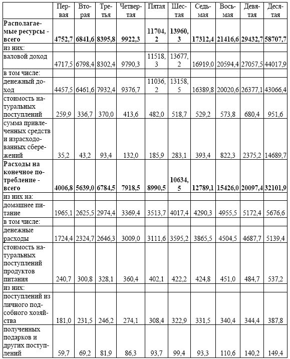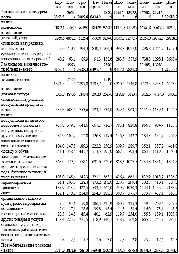 Г. В ЗАВИСИМОСТИ ОТ МЕСТА ПРОЖИВАНИЯ И УРОВНЯ СРЕДНЕДУШЕВЫХ РАСПОЛАГАЕМЫХ РЕСУРСОВ ПО ДЕЦИЛЬНЫМ ГРУППАМ НАСЕЛЕНИЯ