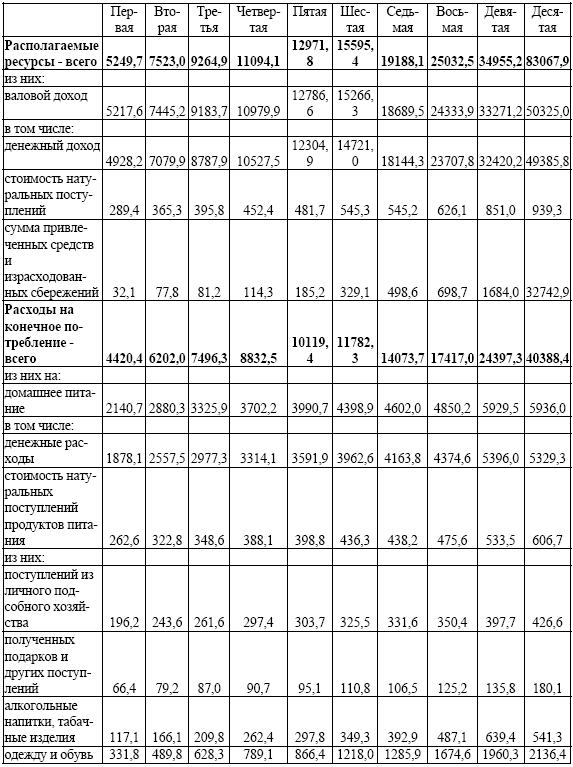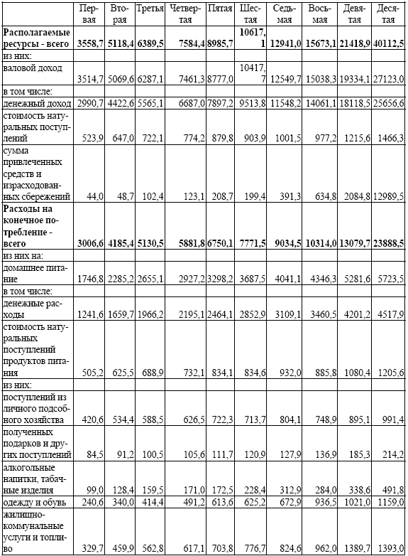 Примечание. Здесь и далее в группировках по децилям первая и десятая группы означают: