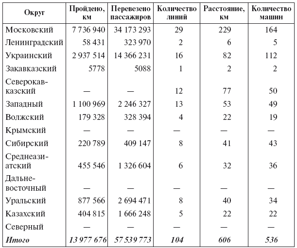 В целом по стране в 1924 г. на междугородных, пригородных и городских линиях работали 94 автобуса, спустя год их число достигло 344, а к началу 1927 г. в автобусном парке было 911 машин. Из года в год при этом менялся характер подвижного состава, и автомобильный транспорт общего пользования приобретал более организованные формы. Подвижной состав на междугородных, пригородных и городских линиях сообщения СССР в 1924–1927 гг. увеличился с 245 до 1288 машин, т. е. на 426 %, и отличался разнообразием. Больше всего было автобусов (79,5 %), далее шли грузовые машины (в том числе 39 % новых), последнее место занимали легковые машины (в том числе 14,5 % новых). Если в 1924 г. в СССР насчитывалось 52 линии общей протяженностью 3326 км, то спустя год линий было 133 (протяженность сети увеличилась до 6686 км), а к 1927 г. – 263 (14 582 км). Хуже обстояло дело с междугородными линиями. Так, в 1924 г. их средняя протяженность составляла 64 км, в 1925 г. с открытием значительного количества городских линий она уменьшилась до 37 км и даже к 1927 г. в связи с открытием ряда дальних линий достигла только 55 км[398].