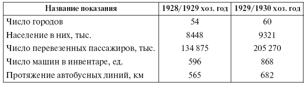 Характеристика городского автобусного сообщения в СССР к началу первой пятилетки дана в табл. 3.2[400].