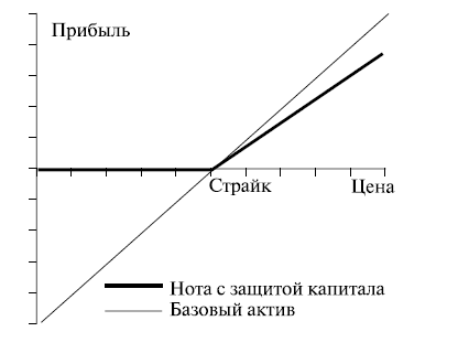 Наиболее популярным видом продукта являются ноты, привязанные к росту индекса. Владелец данного продукта на дату погашения получает 100 % инвестированного капитала и прирост базового актива в случае его благоприятной динамики. Уровень защиты капитала и коэффициент участия могут варьироваться. При низком пороге защиты капитала инвестору предоставляется более высокий коэффициент участия, и наоборот. В последнее время на рынке наметились тенденции по добавлению купонных платежей в структуру данного инструмента, а также использование механизмов для ее удешевления. Среди продуктов с защитой капитала можно выделить следующие наиболее распространенные: защита капитала без верхнего порога (Uncapped Capital Protection) и защита капитала с верхним порогом выплат (Capped Capital Protection).
