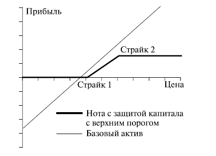 Рис. 4.13. График выплат ноты с защитой капитала с верхним порогом