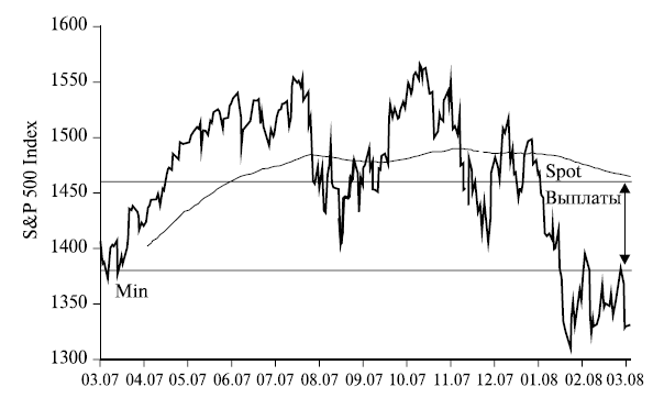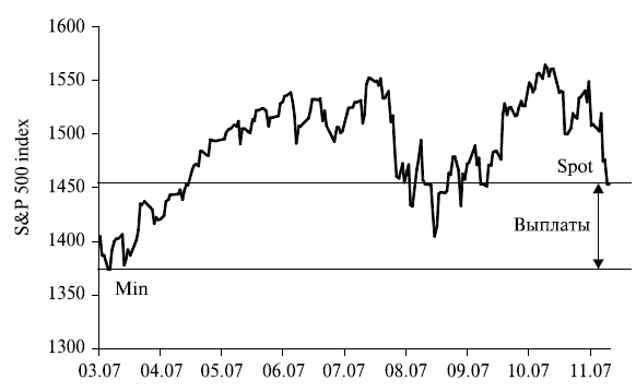 Рис. 4.16. Пример выплат опциона колл с оглядкой назад