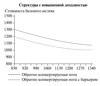 • если же цена базового актива будет находиться ниже установленного барьера, инвестор берет на себя убыток от падения, как и при прямом инвестировании.