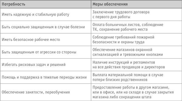 Обеспечить потребность в безопасности действительно очень важно. Продавцам нужно знать, что они находятся под защитой. В компаниях, где я работала, потребность в безопасности обеспечивали следующим образом: