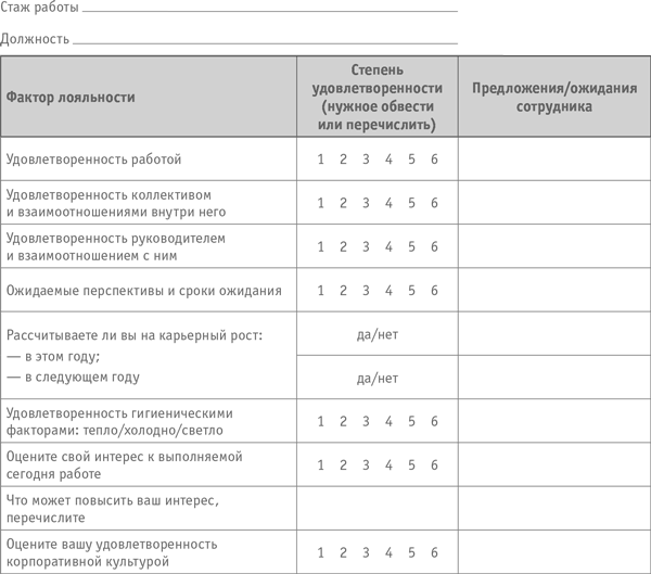 Мне очень нравится проводить анкетирование персонала. Оно воспринимается как внимание со стороны руководства, и обычно продавцы с удовольствием отвечают на вопросы. Цель опроса – узнать о настроении продавцов, моральном климате в коллективах, выяснить, как можно улучшить будни персонала, не пропустить начальную стадию «выгорания». Ответы продавцов дают понимание того, куда нужно двигаться дальше в работе с персоналом.