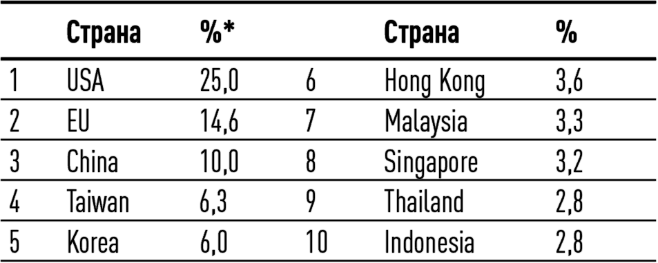 Для расширения кругозора приведем следующую таблицу, в которой указаны страны – крупнейшие внешнеторговые партнеры Японии: