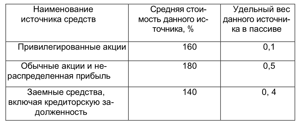 5) перемножить стоимость средств по каждому источнику на соответственный удельный вес;
