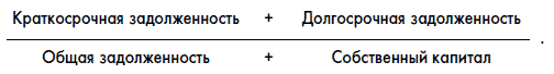 А теперь мы поговорим о коэффициентах, которые позволяют измерить структуру капитала. Наиболее естественная формула измерения «кредитной нагрузки» – это соотношение собственного и заемного капитала: