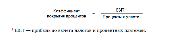 Кроме того, кредиторов всегда волнует вопрос: «А насколько легко компания сможет выплачивать мне проценты по кредиту?» В самом деле, проценты – основной бизнес банков. Если даже у компании появятся определенные временные трудности с выплатой основной части долга, выплату этой основной части банк может продлить, по-прежнему продолжая получать свой основной доход, т. е. проценты. А вот если возникает проблема с выплатой процентов, это уже серьезно – банк не сможет получить свой доход. Поэтому основной коэффициент измерения возможности компании оплачивать долги – это коэффициент покрытия процентов (interest coverage ratio):