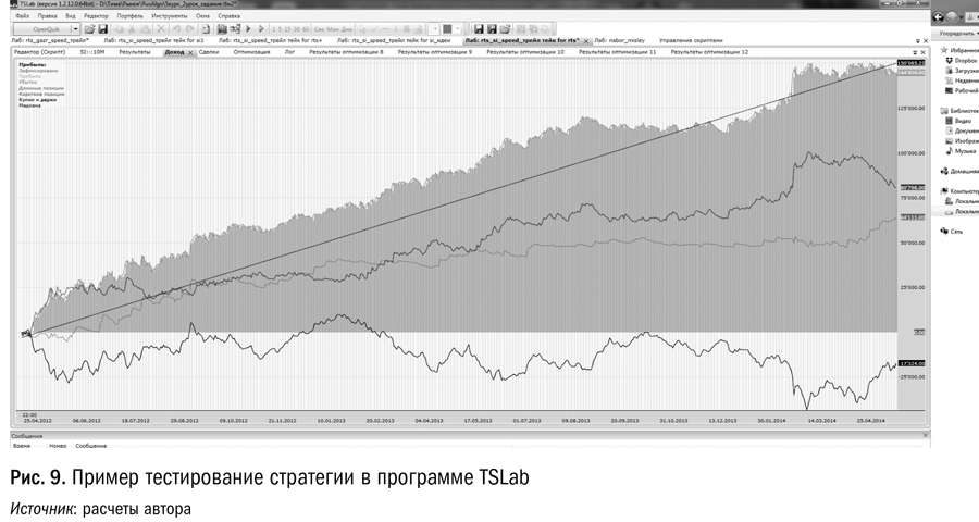 Теперь вы намереваетесь протестировать простую стратегию – пересечение двух скользящих средних на одном из ваших любимых инструментов. Все выглядит достаточно просто. Построив по алгоритму систему, вы нажимаете кнопку «Протестировать и оптимизировать». Программа начинает работать и искать для вас идеальные параметры двух скользящих средних, исходя из таймфрейма и периода, который вы установили. Спустя пару минут умная машина выдает график доходности за прошлый год, который показывает, что с заданными параметрами вы должны были заработать просто бешенную сумму (рис. 9)! Вот где клад, думаете вы. По сути, теперь вам нужно лишь применить предложенные параметры на реальном рынке и ждать свой первый миллион. Но, я думаю, вы догадываетесь, что если бы все было так просто, то все давно бы уже стали мультимиллионерами.