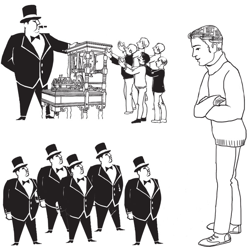 Раньше Маркс мог ссылаться на капиталиста, захватившего средства производства. Теперь же человек с ноутбуком зачастую способен воздвигнуть огромное предприятие, так непохожее на то, что люди привыкли считать предприятиями ранее. Теперь сложно обвинять капиталиста, что он монополизировал право допуска к станку. Современный высококвалифицированный специалист всегда имеет этот станок при себе – это его ум, таланты, знания, умения, способности.