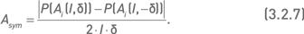 Если построить график платежной функции портфеля, отложив по оси X значения индекса, а по оси Y стоимость портфеля, то Asym можно представить как модуль коэффициента наклона прямой, соединяющей две точки графика с абсциссами X = I(1 + ?) и X = I(1 ? ?). Чем больше величина коэффициента отклоняется от нуля, тем более асимметрична платежная функция (если коэффициент равен нулю, то платежная функция портфеля полностью симметрична).