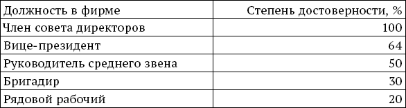 Исследования показывают, что при четырехзвенной системе коммуникаций в нисходящих потоках информации степень достоверности достигает на нижнем этаже лишь 20 %, а при восходящих потоках – и того меньше (табл.5).
