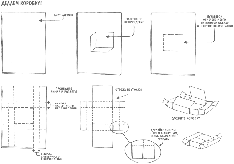 В. Сделайте то, что написано в пунктах с первого по шестой. Коробку с работой поместите в еще одну коробку, размером побольше, а потом проделайте все то же – как если бы первая коробка была самим произведением.