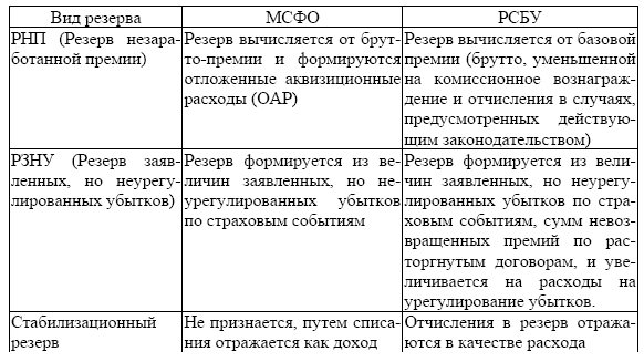 Основные отличия РСБУ и МСФО по отражению в отчетности страховых резервов
