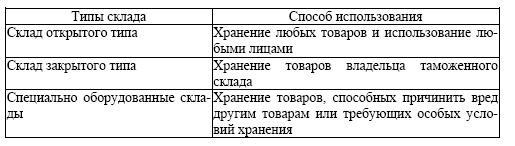 Таблица 7 – Типы таможенных складов