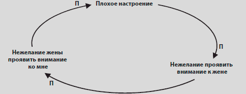 Это был долгий день, поезда опаздывали, на дорогах скопились ужасные пробки, и лил дождь. Наконец я добрался до дома, но в плохом настроении и очень хотел, чтобы жена похлопотала надо мной. Однако у жены тоже выдался тяжелый день, и ей хотелось, чтобы я позаботился о ней. А я ждал внимания от нее, и, поскольку не получил его, настроение у меня стало еще хуже. О Господи! Ниже я нарисовал петлю: