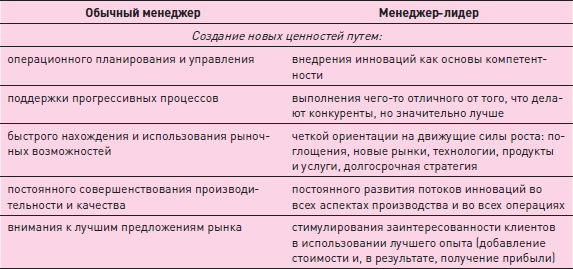Таблица 4.3. Различия между менеджерами и лидерами с точки зрения создания новых ценностей