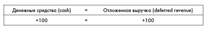 Итак, первый случай мы с вами уже рассмотрели: отложенная выручка образуется в том случае, если компания заключила договор об оказании каких-то услуг или поставке каких-то товаров, получила деньги или обязательства от клиента, но выполнять свои обязательства по оказанию услуг или поставке будет в течение какого-то времени. Так, при покупке клиентом двухлетнего сервисного контракта у Circuit City на $100 будет зафиксирована следующая операция: