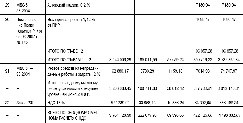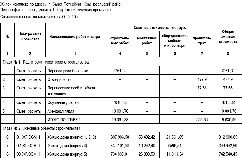 При составлении сводного сметного расчета на стадии проектной документации (табл. 7.3) использованы данные локальных и объектных смет в составе сметной документации на строительство квартала «Жемчужная премьера».