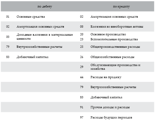 При выбытии (продаже, списании, частичной ликвидации, передаче безвозмездно и др.) объектов основных средств сумма начисленной по ним амортизации списывается со счета 02 «Амортизация основных средств» в кредит счета 01 «Основные средства» (субсчет «Выбытие основных средств»). Аналогичная запись производится при списании суммы начисленной амортизации по недостающим или полностью испорченным основным средствам.