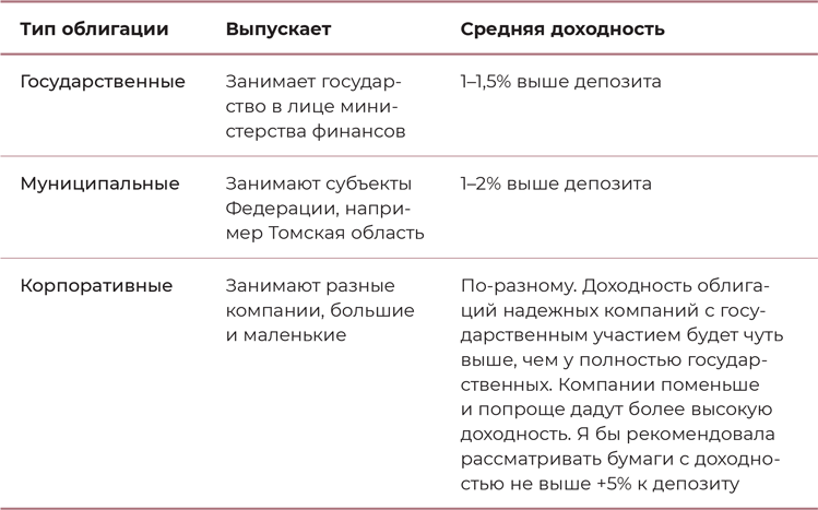 Выбирая облигацию, вы фактически оцениваете, кому и под какой процент вы готовы дать в долг. Кого вы выберете? Ответственную и трудолюбивую Снежану с успешным бизнесом или легкомысленную вертихвостку-соседку? Первой все захотят дать в долг, а вот второй придется заманивать кредиторов высокими процентами. Аналогичная ситуация в бизнесе: крупные, успешные, стабильные компании платят небольшой купон (немного выше депозитных ставок), а менее надежные будут обещать золотые горы. Снова наша любимая пара «риск и доходность».