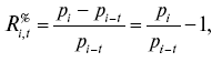 Заметим, что в практике инвестиционного анализа приемлемы два подхода к расчету доходности. Процентная (дискретная) доходность с момента времени t до момента i: