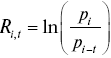 Логарифмическая (непрерывная) доходность с момента времени t до момента i: