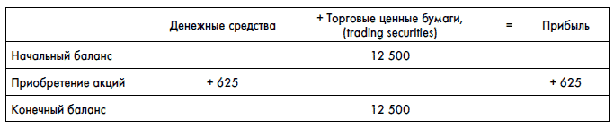 Примечание: длинные сроки владения указаны только с целью сравнения учета торговых ценных бумаг с финансовыми активами, доступными для продажи. В реальности, конечно, сроки владения торговыми бумагами у компании будут короче.